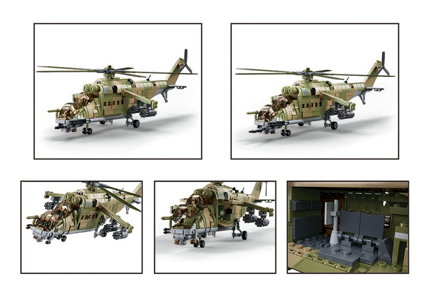 The M38-B1137 Sluban - MI-24S Gunship is a beautiful set from the Army series. Order this box of Sluban building blocks for hours of fun.